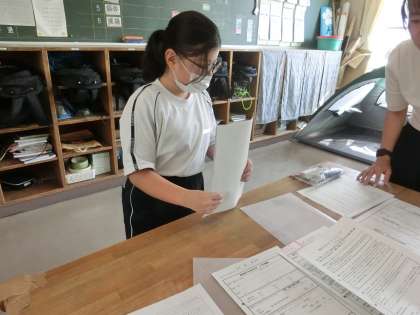 地図パズルで県名や国名、その形や位置を繰り返し学習しています。また2年生は、翌日に控えた職場体験の事前訪問に向けて、体験先でのマナーやコミュニケーションで意識することの最終確認をしていました。