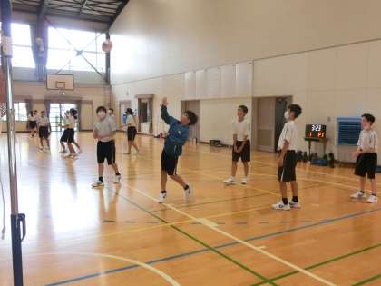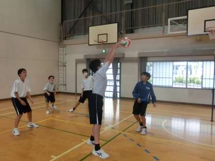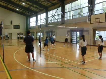 男女対抗でのバレーボールのゲームに取り組んでいました。ゲームでしっかり力を発揮できるよう、事前の練習にも熱が入っていました。