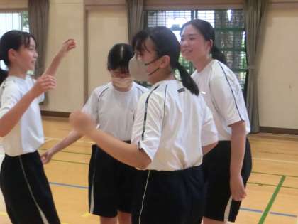 バレーボールのゲームで、チームワークを発揮して戦うことを目標として取り組んでいました。男女別のグループであっても、対戦は混合。女子チームが男子チームからポイントを取り、大喜びしている姿が印象的でした。