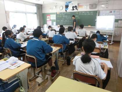 「沸点や融点の違いから考えよう」というテーマで学習が進められていました。難しい重要語句がたくさん黒板に書かれています。しっかりと意味を理解しながら覚えていってほしいと思います。