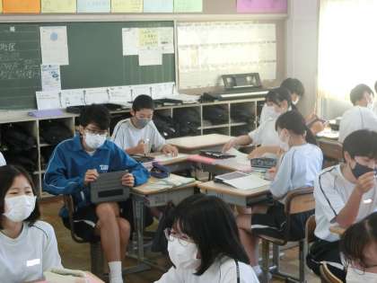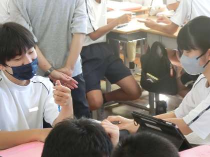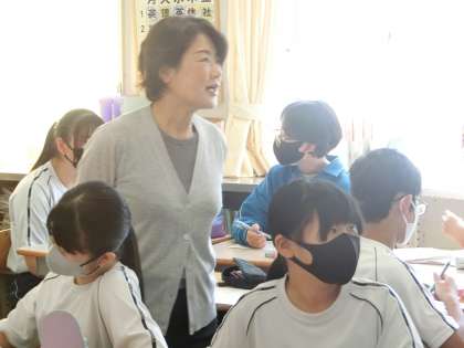 「短歌を味わう」の単元で、桃太郎を題材に各自が考えた短歌をグループで読み合い、その感想を交換していました。仲間の発想や視点、よかった点などの感想を聞き、学習が充実している様子が感じ取れました。