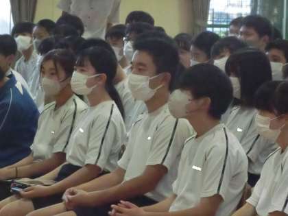 終始真剣な表情で集会に参加した3年生。今後の自分の生き方にも活かしてほしいと思います。
