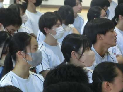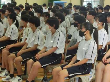 終始真剣な表情で集会に参加した3年生。今後の自分の生き方にも活かしてほしいと思います。
