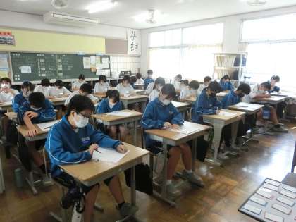 10/2 ちょっとしたつまずきのうちに… 1 公開日 2023/10/02 更新日 2023/10/02 各学年から 1年4組の数学の授業の様子です。 単元のまとめのテストに取り組んでいました。今月の大きな行事の文化祭から約1か月後、第3回の定期テストが予定されています。こうした単元のテストの前後にもしっかり学習し、少しのつまずきのうちに必ず解決しておいてほしいと思います。