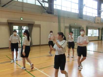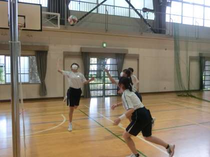 バレーボールの学習で、男女対抗のゲームが行われていました。最初のうちは女子に少し優しかった男子。でも点を取られ始めると、闘志のスイッチが入り、スパイクが炸裂することも。それでも女子は嫌がるどころか、負けじと楽しく戦います。