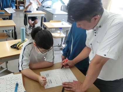 各自の課題に取り組み、たくさんの正解のマルをもらったあと、発展問題に挑戦していきます。大型モニターの前には人だかりができ、レベルをどんどん上げていこうと意欲的な姿が見られました。