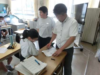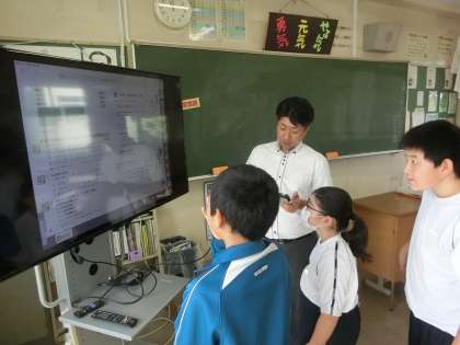 各自の課題に取り組み、たくさんの正解のマルをもらったあと、発展問題に挑戦していきます。大型モニターの前には人だかりができ、レベルをどんどん上げていこうと意欲的な姿が見られました。