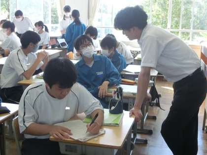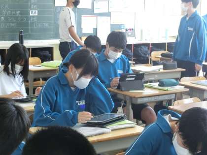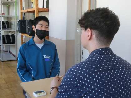 今日はALTによるスピーキングテストが行われていました。様々な日常会話の中で、どれだけのやり取りができるか、緊張しながらも笑顔でテストを受けている様子に感心しました。