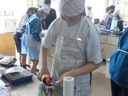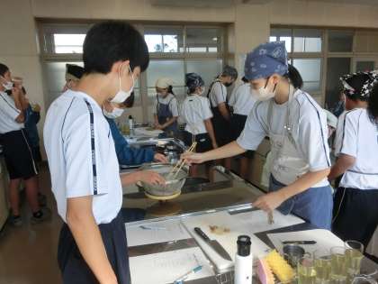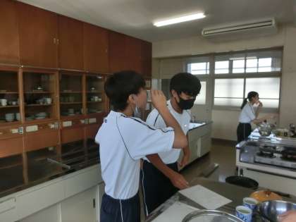 今回は調理実習。日本が誇る出汁文化を追究するため、鰹節から出汁を取り、出汁を取った後の鰹節でふりかけをつくるという実習でした。仲間との協力はもちろん、活動の手際のよさにも感心しました。