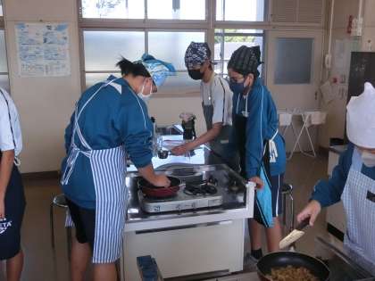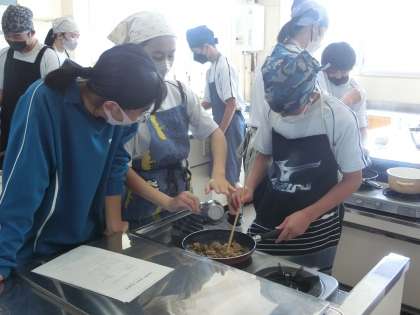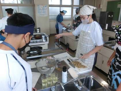 今回は調理実習。日本が誇る出汁文化を追究するため、鰹節から出汁を取り、出汁を取った後の鰹節でふりかけをつくるという実習でした。仲間との協力はもちろん、活動の手際のよさにも感心しました。