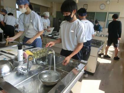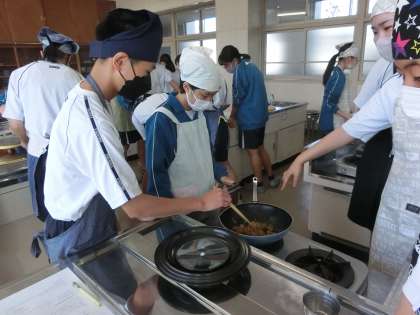 今回は調理実習。日本が誇る出汁文化を追究するため、鰹節から出汁を取り、出汁を取った後の鰹節でふりかけをつくるという実習でした。仲間との協力はもちろん、活動の手際のよさにも感心しました。
