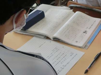 「観点を決めて読み比べよう」の単元で、「二つの文章の要旨をまとめよう」をテーマに学習が進められていました。文章といってもある程度の量があるものが二つ。一生懸命読み、要旨をまとめていました。