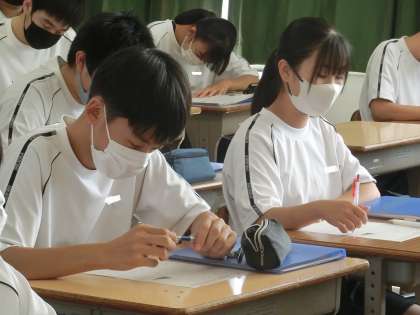 10/3 基礎を学んで今後に備える 3 公開日 2023/10/03 更新日 2023/10/03 各学年から 3年1組の数学の授業の様子です。 二次関数の変化の割合について学習していました。今後、この二次関数に関わる応用問題がいろいろと出題されます。基礎となる部分をしっかり理解してほしいと思います。