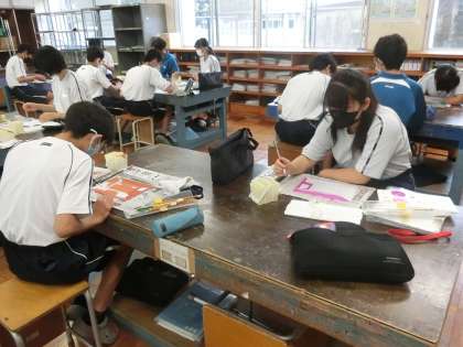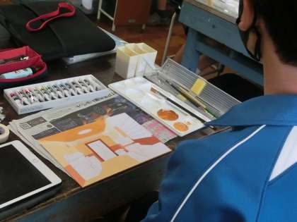 「理想の空間デザイン」の着色に取り組んでいました。タブレットで考えた配色をもとに、色づくりから塗る活動まで、丁寧に進めていました。