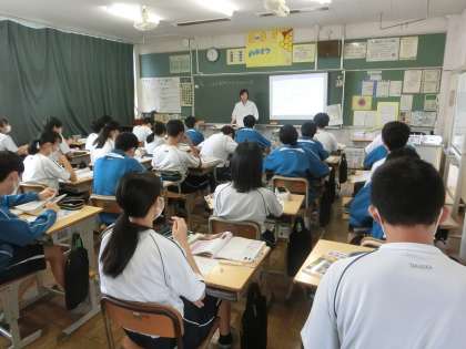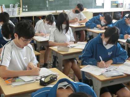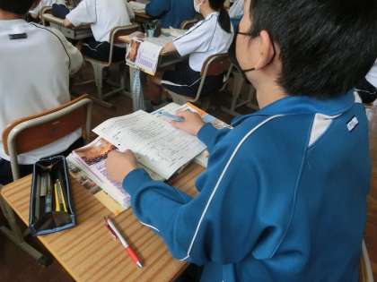 「公正な裁判を行うためのしくみ」について学んでいました。裁判所の種類やそれぞれで行われる裁判の内容などを学んだあと、演習問題に取り組み、学習した内容を確認していました。集中して学習に臨む姿が印象的でした。