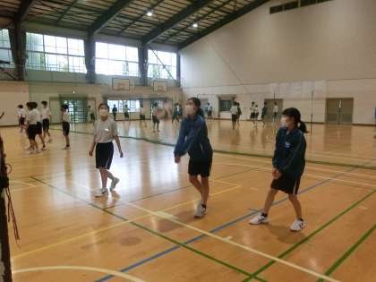 男女混合でのバレーボールの対戦が行われていました。得点した時の喜びが大きいのは、しっかり練習してきた証です。楽しむだけでなく、チームの作戦や役割分担の確認など、学習のレベルが上がってきていることが伝わってきます。