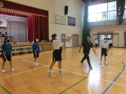 男女混合でのバレーボールの対戦が行われていました。得点した時の喜びが大きいのは、しっかり練習してきた証です。楽しむだけでなく、チームの作戦や役割分担の確認など、学習のレベルが上がってきていることが伝わってきます。