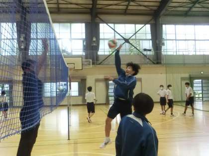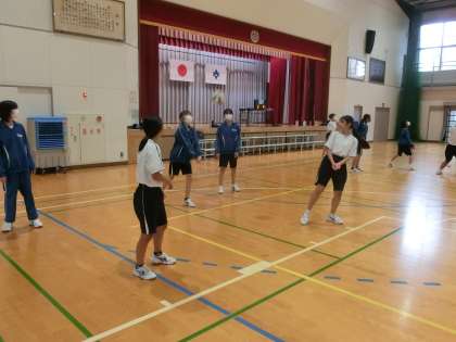 男女混合でのバレーボールの対戦が行われていました。得点した時の喜びが大きいのは、しっかり練習してきた証です。楽しむだけでなく、チームの作戦や役割分担の確認など、学習のレベルが上がってきていることが伝わってきます。