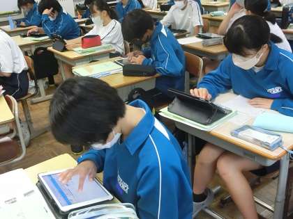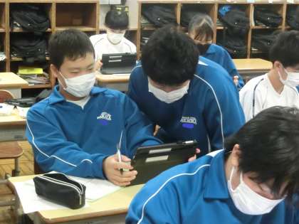 1年2組の社会・地理分野の授業の様子です。
