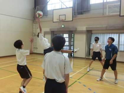 今回は男女別でのゲームが行われていました。三段攻撃の確率も上がり、競技としての技能もずいぶんついてきました。得点を決めた時、頑張ったのに相手に点を取られてしまった時のどちらも、歓声が上がるほどの盛り上がり。体育館中が熱気に包まれていました。