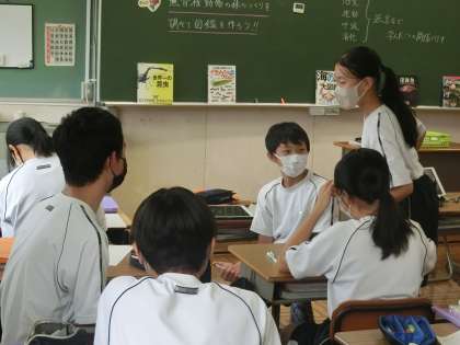 「動物の体のつくりとはたらき」の単元で、「無脊椎動物の体のつくりを調べて図鑑を作ろう!」をテーマに学習が進められていました。これまで学習したことをもとに、どんなポイントをおさえると相手に興味をもってもらえるか、どんなレイアウトや内容にすると相手に伝わりやすいかなどを考えて図鑑づくりに熱中していました。