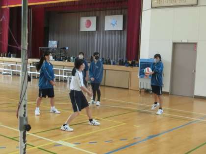 男女の対戦ありでゲームが行われていました。三段攻撃をするチームがいよいよ出てきました。得点を決めた時、頑張ったのに相手に点を取られてしまった時のどちらも、歓声が上がるほどの盛り上がり。体育館中が熱気に包まれていました。