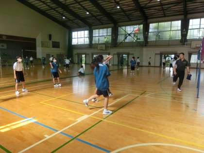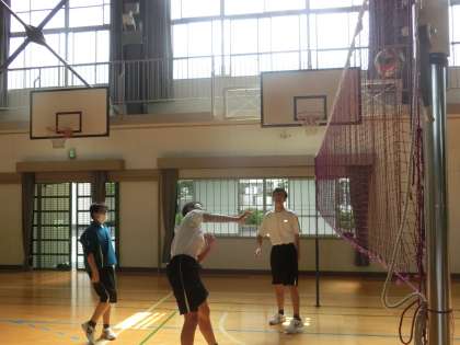 男女の対戦ありでゲームが行われていました。三段攻撃をするチームがいよいよ出てきました。得点を決めた時、頑張ったのに相手に点を取られてしまった時のどちらも、歓声が上がるほどの盛り上がり。体育館中が熱気に包まれていました。