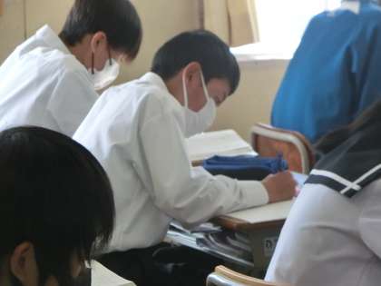 向田邦子さんの「字のない葉書」を読み、最初にもった感想を書いていました。この感想をもとに授業が組み立てられ、今後、さらに深いところまで読み込んでいきます。熱心に取り組んでいる様子が伝わってきます。