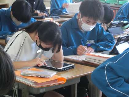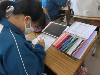 「動物の体のつくりとはたらき」の単元で、「無脊椎動物の体のつくりを調べて図鑑を作ろう!」をテーマに学習が進められていました。これまで学習したことをもとに、どんなポイントをおさえると相手に興味をもってもらえるか、どんなレイアウトや内容にすると相手に伝わりやすいかなどを考えて図鑑づくりに熱中していました。