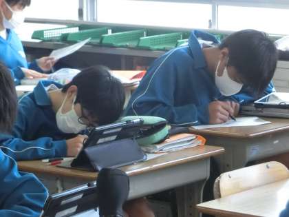 「動物の体のつくりとはたらき」の単元で、「無脊椎動物の体のつくりを調べて図鑑を作ろう!」をテーマに学習が進められていました。これまで学習したことをもとに、どんなポイントをおさえると相手に興味をもってもらえるか、どんなレイアウトや内容にすると相手に伝わりやすいかなどを考えて図鑑づくりに熱中していました。