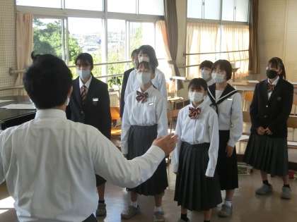 合唱コンに向けてのパート練習です。どのパートも声がよく出るようになってきました。指揮者、伴奏者も加わり、いよいよ全体で合わせる時も近くなりました。