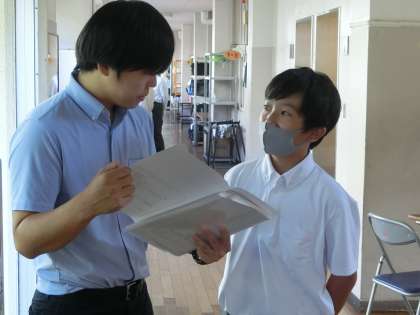 金曜日の午後、1,2年生の学活では、担任から一人一人にアドバイスとともに通知表が手渡されました。通知表は個人の頑張りを評価したものであり、人と比べて一喜一憂するものではありません。自分の長所や短所を知り、弱点があればそれを克服するためのものです。テストの点数だけでなく、日頃の授業態度や課題・提出物の取組など、自分に合ったもっといい方法を見つけるための材料にしてほしいと思います。