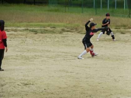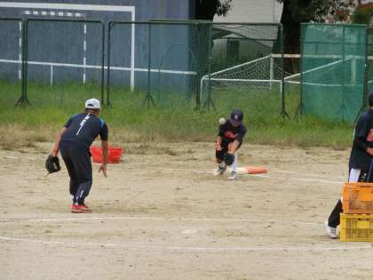 写真は、ソフトボール部の様子です。前回大会での好成績とたくさんの熱心な指導者に囲まれ、練習にも活気が出ています。どのメニューも楽しんで取り組んでいる様子から、その雰囲気が伝わってきます。