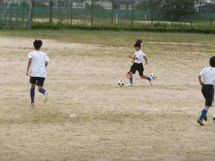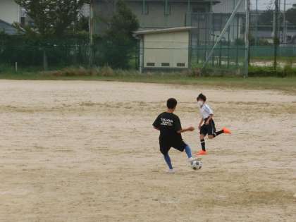 写真は、サッカー部の様子です。基礎メニュー、シュート練習、ミニゲームと限られた時間でも一生懸命練習しています。