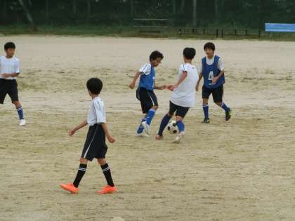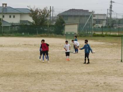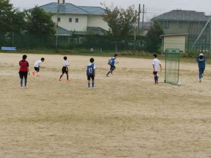 写真は、サッカー部の様子です。基礎メニュー、シュート練習、ミニゲームと限られた時間でも一生懸命練習しています。