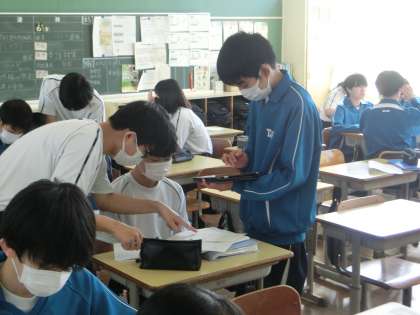 明後日に控えている第2回学習診断テストに向けて過去の問題に挑戦し、理解が不十分だった問題を仲間と一緒に解いています。