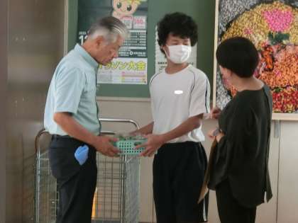 10/10 気前のよさ 公開日 2023/10/10 更新日 2023/10/10 各学年から 学級菜園で採れた野菜を職員室に販売に来た1,2学級の生徒。気前がよく、結局無料で先生たちに配付していました。