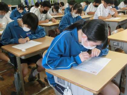 10/10 連休明けでも高い集中力 2 公開日 2023/10/10 更新日 2023/10/10 各学年から 3年1組の国語の授業の様子です。 単元のまとめのテストが行われていました。連休明けであっても高い集中力で臨んでいる様子が分かります。明後日の学習診断テストでも力が発揮できることを期待したいと思います。