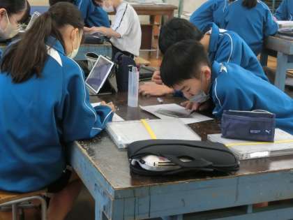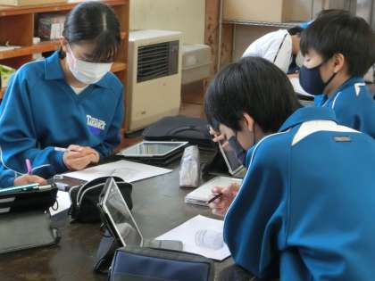 これまで学習してきた鉛筆だけで影をつける技術などを駆使し、作品づくりに一生懸命取り組んでいました。この後、仲間の作品を鑑賞してそのよさを見つけ、今後の作品づくりの参考にしていました。