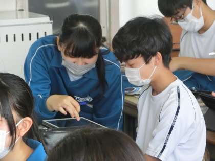 プログラミングの学習に取り組んでいました。仲間と気軽に相談できるとても雰囲気のよい授業です。