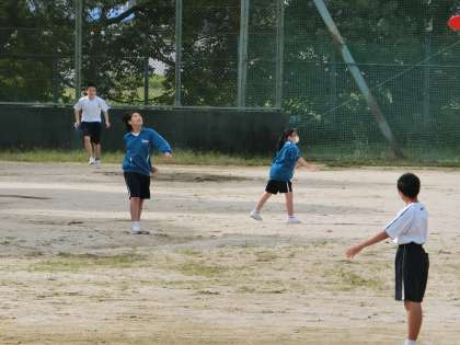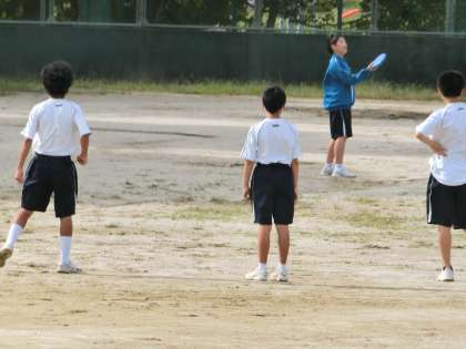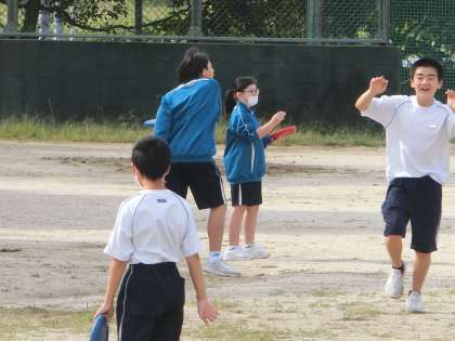 さわやかな秋晴れの下、運動場でフライングディスクに挑戦していました。うまく飛ばせない時もありますが、楽しそうにディスクを飛ばし、一生懸命追いかける生徒の姿が印象的でした。