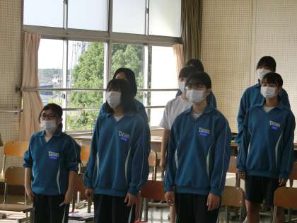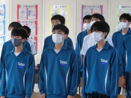 合唱コンの練習を全体で行っていました。練習の様子を見に来た学級担任が、日頃の練習の成果が出るよう、生徒たちに声をかけています。この1時間で成長につながる何かを得ようと、生徒も先生も必死です。