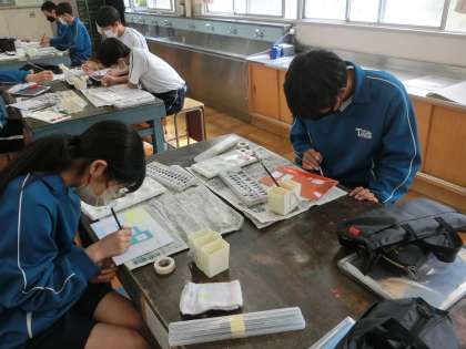 昨日の2年2組の美術の授業の様子です。