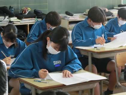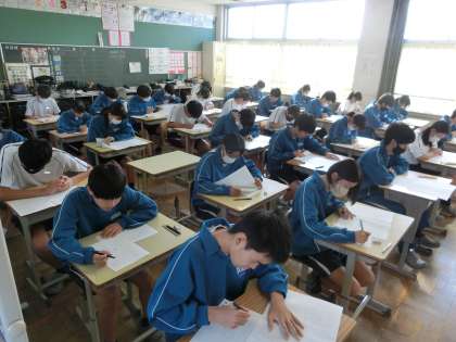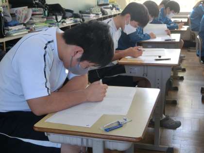 今年度2回目となる学習診断テストの臨んだ3年生。夏休みの努力、進路希望調査などを経ての取組となります。自分の将来についてどれだけ本気で戦っているかを見極めるテストでもあります。そのため、生徒たちの取り組む姿勢はこれまでの最上級。納得のいく結果を手にしてほしいと思います。