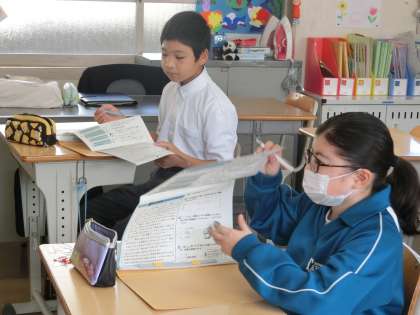 1,2学級の国語の授業の様子です。