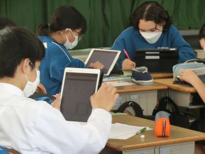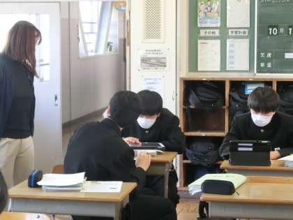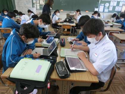 「中部地方をPRしよう!」をテーマに学習が進められていました。農業、工業、観光業、伝統産業、地場産業など、興味ある分野でグループを作り、仲間とアイデアを出し合いながらPR紙を作成していきます。学習した内容からどんなものに発展していくか、期待が膨らみます。