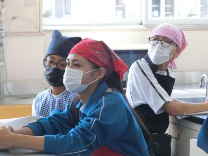 「日本が誇るUМAМI(うま味)の良さとは?」というジャンプ課題への挑戦で、鰹節から出汁とふりかけづくりの調理実習が行われていました。ふりかけをつくるため、出汁を取った鰹節を冷ましている間に、うま味についてしっかりと学習していました。