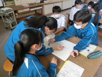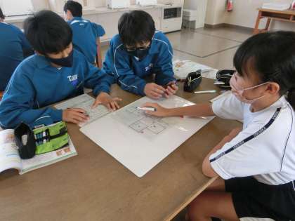 10/14 こんな時、どんな工夫ができる? 2 公開日 2023/10/14 更新日 2023/10/14 各学年から 昨日の1年4組の家庭科の授業の様子です。 「家族が快適で安全に住まうには、どんな工夫ができるかな?」をテーマに学習が進められていました。クレヨンしんちゃんの家の間取りを利用して、普段の生活での工夫や来客があったときなど、場面を想定して工夫を考えていきます。グループでの意見交換が活発に行われていました。