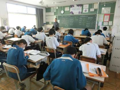 「電流の大きさ」の学習で、記号を用いて回路図の作成に取り組んでいました。様々な記号の特徴や描くときのルールに基づいて、正確に回路図を描いていきます。しっかりと身につけるため、繰り返し練習して正確に早く描けるようにしてほしいと思います。