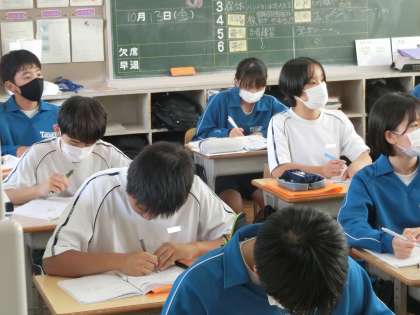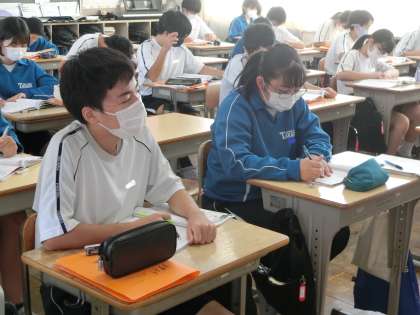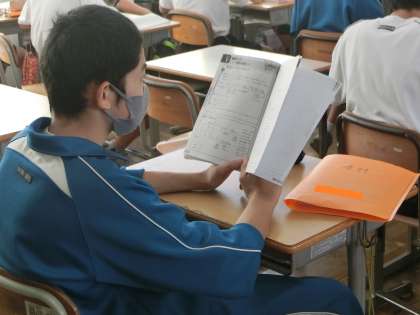 「電流の大きさ」の学習で、記号を用いて回路図の作成に取り組んでいました。様々な記号の特徴や描くときのルールに基づいて、正確に回路図を描いていきます。しっかりと身につけるため、繰り返し練習して正確に早く描けるようにしてほしいと思います。